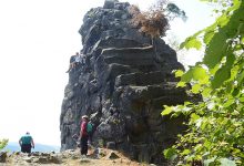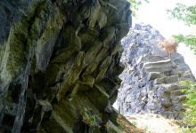 Následuje dlouhá táhlá cesta planinou do obce Lesná (ještě že jsou maliny, ostružiny a sem tam nějaký výhled). Bohužel, i výhled na požár. Kousek cesty a přes pastviny se dostáváme pod Vrabinec. Úchvatné místo, jak samo o sobě, tak díky výhledům do Labského údolí. Výstup až na vrchol opravdu nepatří k nejjednodušším, ale stojí za to. Ovšem jak tu kdysi mohl stát hrad, to je za hranicemi mé představivosti…