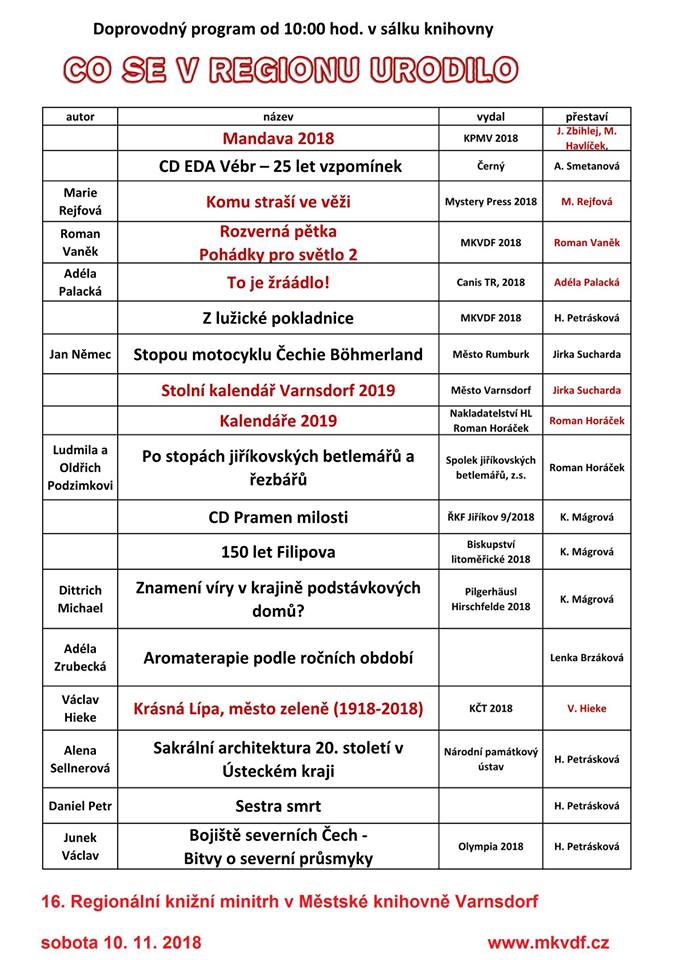 V sobotu 10. listopadu 2018 se ve Varnsdorfu konal již po šestnácté Regionální knižní minitrh.