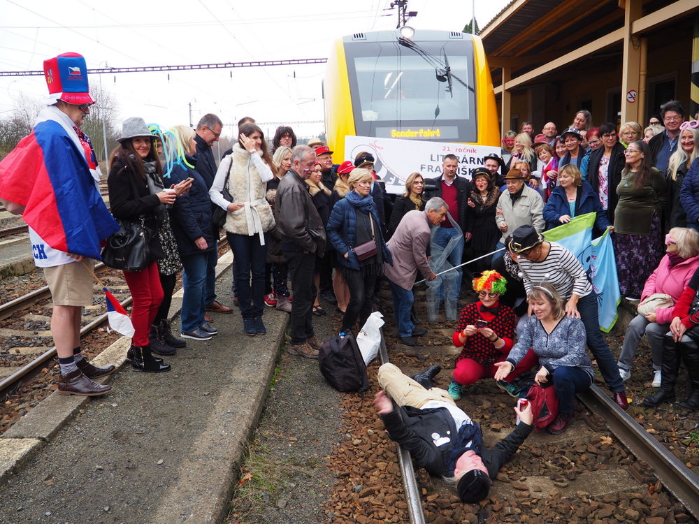 Za zmínku stojí přijetí celé početné happy-vlakové výpravy v královském salonku na nádraží v Hofu za účasti tří starostů. Vedle františkolázeňského Jana Kuchaře tam byli bürgemeister Rehau Michael Abraham a oberbürgemeister města Hofu Harald Fichtner. Příjemnou pohostinnost hofských spolupořadatelů vhodně doplnily další křtiny – tentokrát páté pokračování sborníku ve dvou knihách (v jedné poezie, ve druhé próza) Literáti na trati, pořádaného básníkem řečeným jahodovým, zde uniformovaným železničním specialistou Františkem Tylšarem.