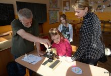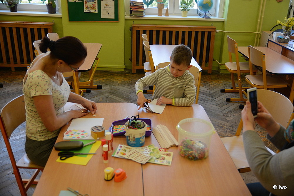 Od tělocvičny po nejvyšší patro různá stanoviště pro obě skupiny zájemců. Od testování fyzické zdatnosti přes výrobu velikonočních artefaktů po zkoušku zápisu nanečisto. Ukázky zájmových činností, specializovaných učeben, školní knihovny. A také pohádka. Důkazem, že tyhle akce mají smysl, je pro mne přítomnost některých, které jsem nedávno potkal u konkurence…