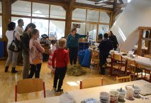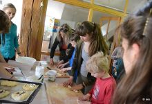 Text může zůstat i letos – perníčky, kynuté těsto, barvení vajíček, pletení pomlázek, tavná pistole, korálky, šňůrky, větvičky, seno, samozřejmě i dlouhý stůl s různými možnostmi vytváření velikonočních dekorací. A další generační obměna přítomných.
