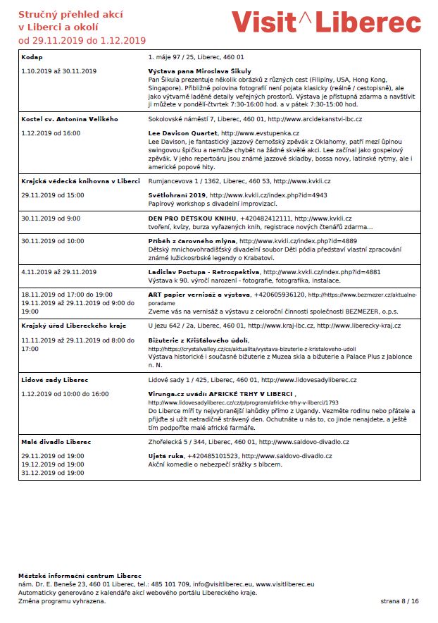 Vše ostatní je na vás – vyberte se, jak je ctěná libost, nabídka je přebohatá. Koukněte do připojených plakátků, do našeho kalendáře, nebo kdekoli jinde, pokud o nějakém zdroji informací víte.