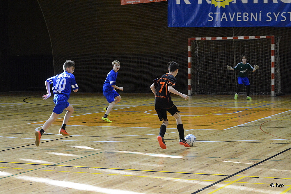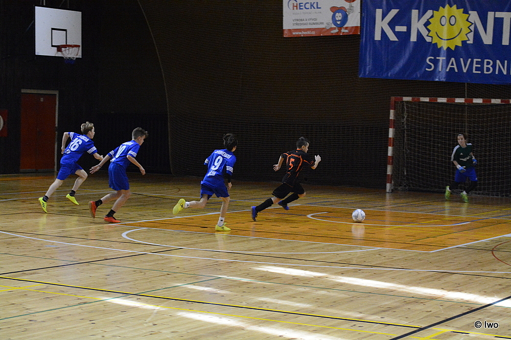 V prvním zápase naši žáci nastoupili proti ZŠ Kamenická, kteří byli favority již z minulého ročníku. V poločase byl čas vyrovnaný 1:1. V druhém poločasu padly do naší brány dva góly a do konce zápasu chyběly 2 minuty. Naši kluci zabrali, dokázali vstřelit druhý gól. Konec se neúprosně blížil, zbývalo posledních 10 vteřin do konce a stav byl 3:2 pro soupeře. Získali jsme míč, David Grafek měl poslední možnost skórovat, od poloviny se probojoval až před soupeřovu branku a najednou ležel na zemi. Rozhodčí zapískal faul a vzápětí se ozvala siréna ukončující zápas. Penalta byla uznána, roli střelce si na sebe vzal sám David. Trestné střílení bezpečně proměnil! Konec zápasu, stav tedy 3:3. Určitě jde tento zápas označit za nejnapínavější ze všech, co se odehrály.