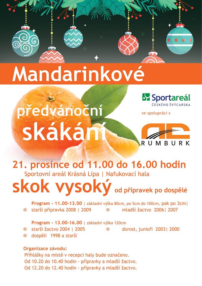 V sobotu 21. prosince 2019 podruhé ve znamení mandarinek – AC Rumburk pořádala další předvánoční závody v areálu sportovního areálu Českého Švýcarska v Krásné Lípě v nafukovací hale.