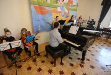Vernisáž hudbou doprovodili žáci místní pobočky ZUŠ Rumburk pod vedením Patrika Engera.