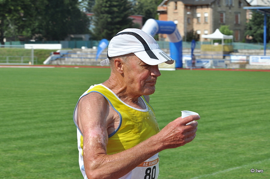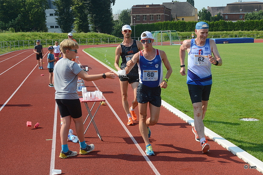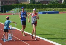 Zajel jsem až v neděli 9. srpna 2020 na Svátek chůze (dlouhé tratě). Start byl původně plánován na devátou hodinu. Když jsem dorazil, ženy už měly takřka půlku za sebou – s ohledem na tropické počasí pochopitelný tah. Začít co nejdřív, dokud bylo ještě relativně normálně. I tak tabule u dráhy ukazovala 30 stupňů… Pár fotek těch, co dokončovaly 10 km, a boj těch, které si daly 20 km.
