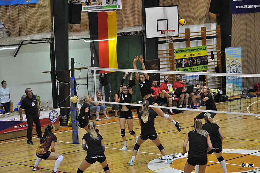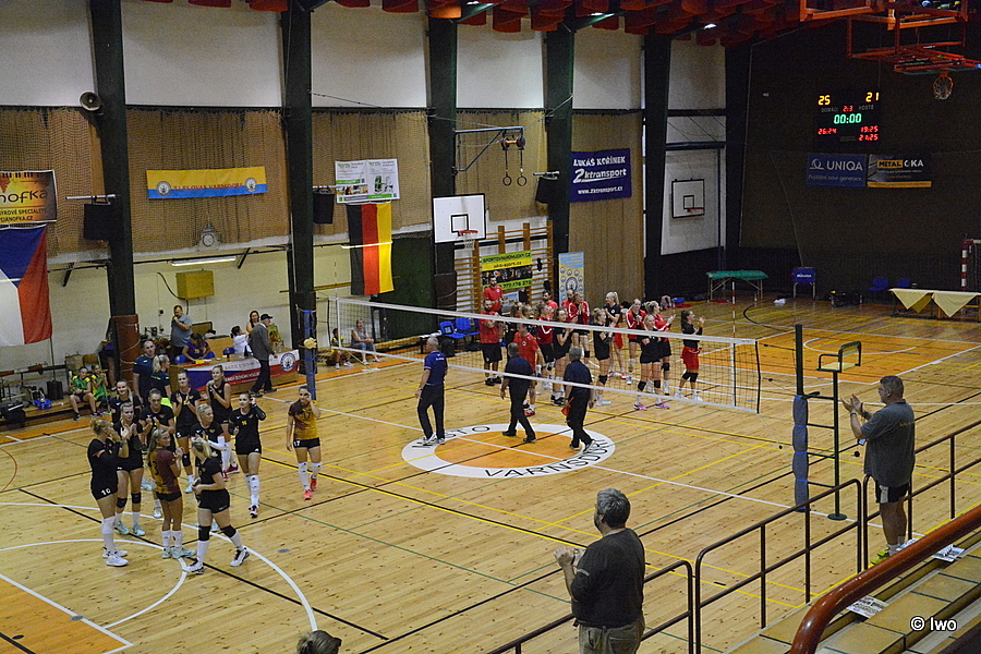 Takřka přesně po jednom roce na palubovku opět nastoupily ženy Dukly Liberec (extraliga žen) a DSC Dresden (1. bundesliga žen). Letos bez předzápasu. Německý celek se dle slov komentátora zastavil na své cestě ze soustředění v Polsku, a stejně jako loni prokázal svou formu (i když ne tak jasně).