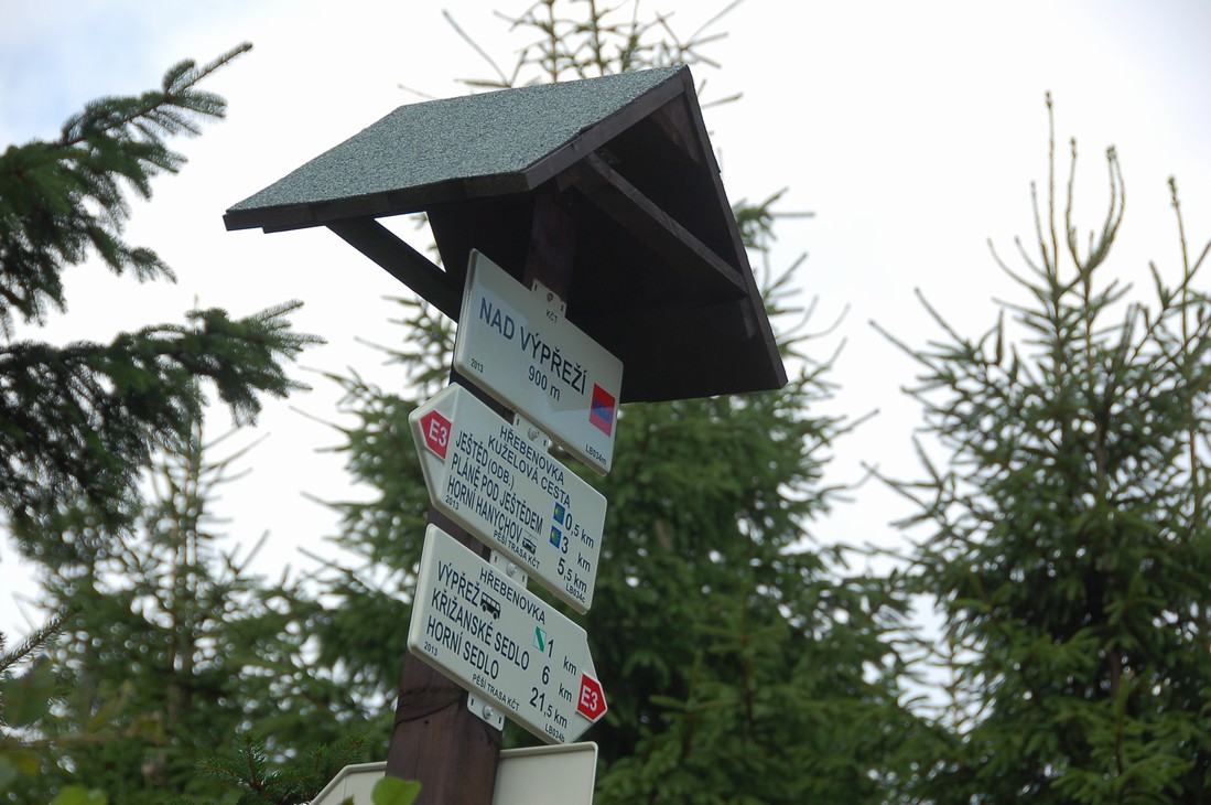 Po vystoupení z tramvaje finální přivítání, vysvětlení důvodu dnešního výšlapu (Lužická spojka na červené turistické značce, jak už o tom byla párkrát řeč) a nástin trasy a časového horizontu. Z jednoho z Liberečáků se k milému překvapení vyklube Zdeněk Rajsigl, vedoucí značkařského obvodu Liberec – Jablonec a předseda krajské komise značení Libereckého kraje, takže doplňuje výklad našich obvyklých průvodců na jednotlivých zastávkách a informační smršť je opravdu důkladná a mnohostranná.