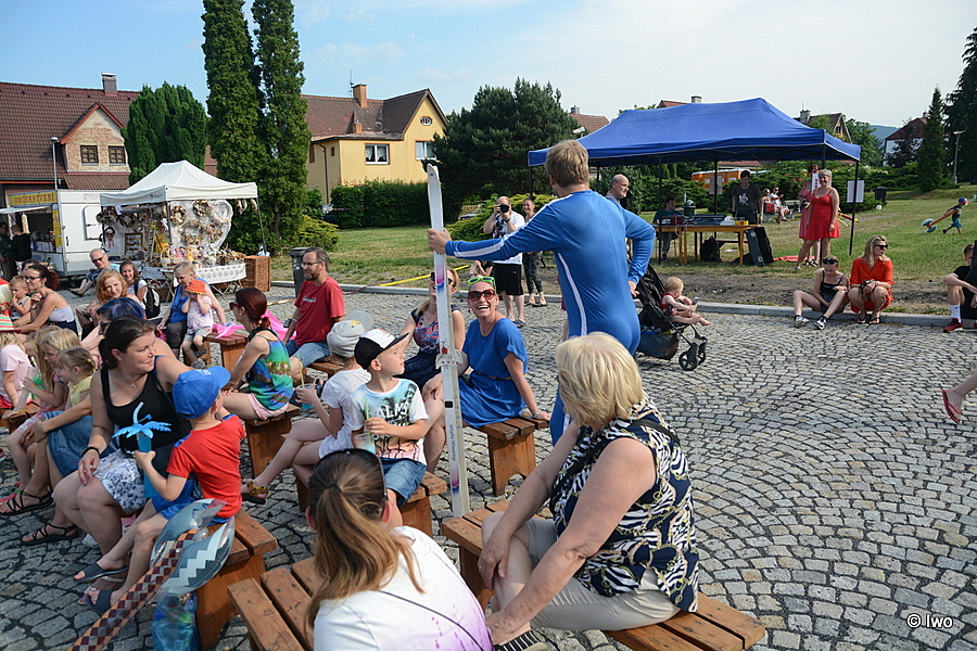 Odpolední program před Městským divadlem zahrnoval vystoupení divadelní kapely Chytej ušima, dvě čísla i místním známého souboru Bratři v tricku (Prasečí cirkus a Běžkařská odysea), vystoupení místních parkouristů. Po celou dobu slavností byl k dispozici „bublinář“ Václav Strasser, AdrenalinPoint, elektrická čtyřkolka, ekohrátky pro děti (stánek společnosti Asekol), nafukovací skluzavka a stánky s občerstvením a pouťovým sortimentem. Den zakončilo vystoupení skupiny Liwid, celým dnem provázela Dagmar Kopečková.