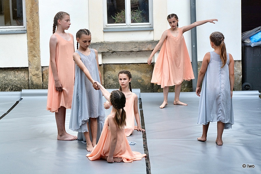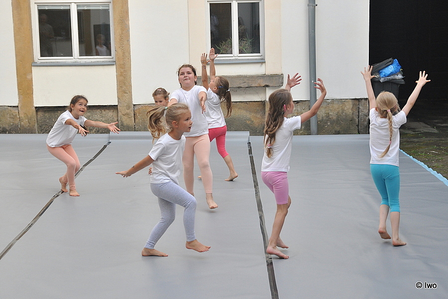 Ve stejném věkovém rozhraní byly i následující Hry s říkadly, které připravila Anna Denežkina se 7 dětmi z TO ZUŠ Varnsdorf na sbírku říkadel a klavírních doprovodů. Dívky v barevných legínách a bílých tričkách si skrze říkadlo připravily uvěřitelné prostředí, do kterého pak citlivě vstoupily a vhodně zvoleným pohybem naplnily hudební předlohu.