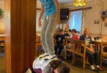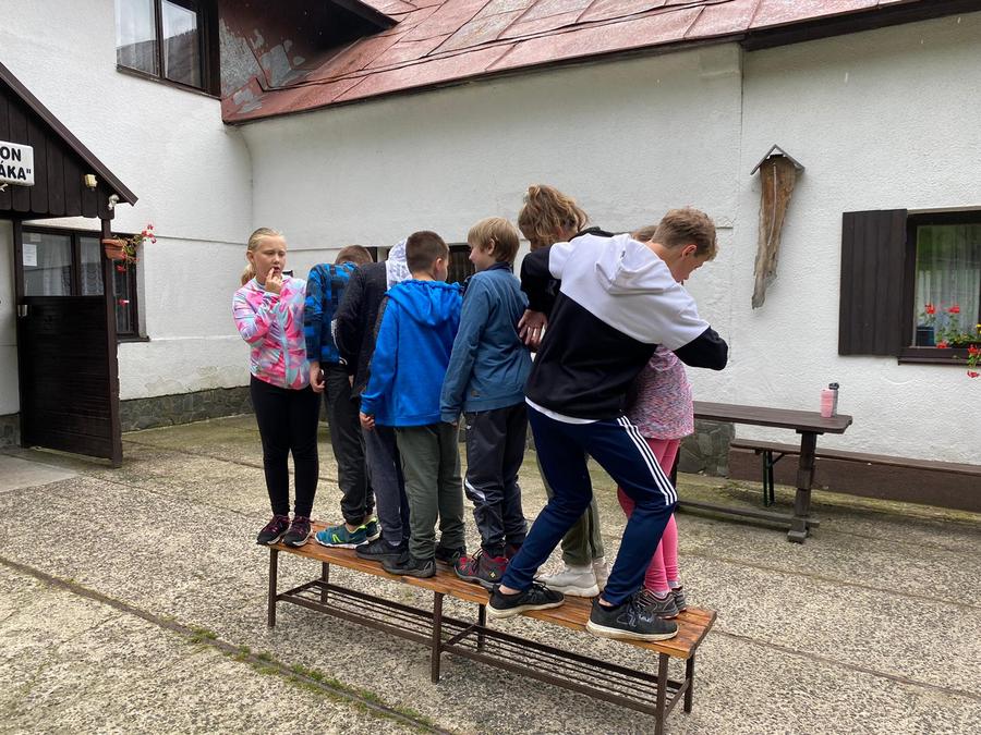 Už aby odbila 13. hodina a my vyrazili na bobovou dráhu! Byla to velká zábava. Hned jak jsme dorazili na místo, rychle jsme se postavili do fronty a jezdili nahoru a dolů, nahoru a dolů… Zpátky se nám vůbec nechtělo, bylo to do kopce a už nás bolely nohy. Na chatě jsme ještě získali zlaťáky za kvíz, spát jdeme úplně „vyšťaveni“ a budeme se těšit na další den. Snad nebude pršet…