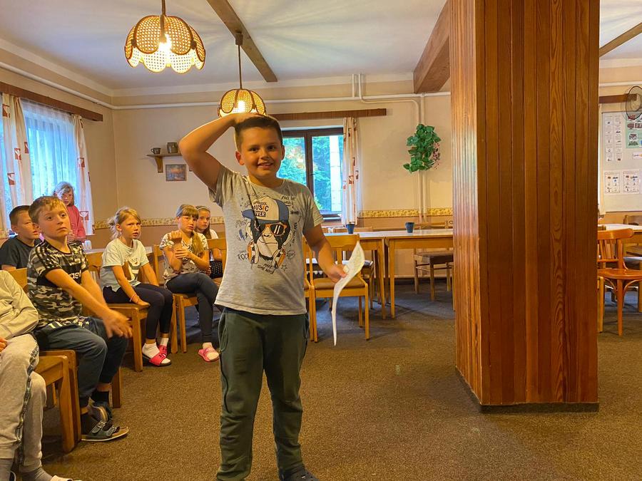 Po obědě nás Moudrý klobouk rozřadil do čtyř kolejí – Zmijozel, Nebelvír, Havraspár a Mrzimor. Už jako kouzelnická elita jsme se vypravili na návštěvu infocentra v Bedřichově. Po cestě jsme mohli hledat stříbrňáky a zlaťáky pro naše koleje. Další se pak daly vyhrát u chaty při sportovních hrách.