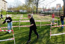 Vedoucí orientačních běžců Rumburk pan Tomáš Babický připravil pro naši školu „Bludiště“.