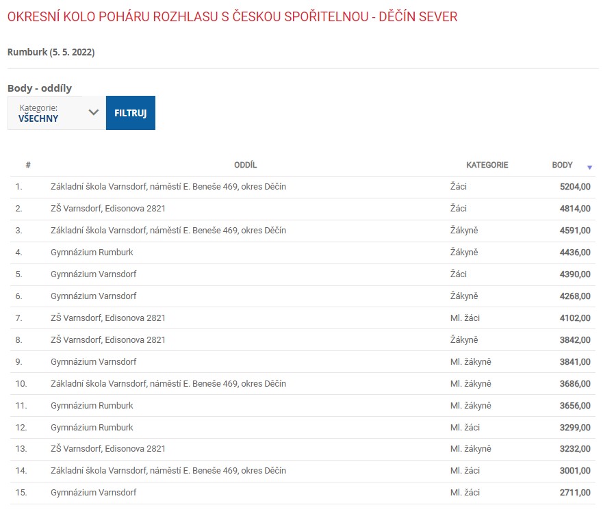 Ve čtvrtek 5. května 2022 se na stadionu v Rumburku uskutečnilo letošní okresní kolo Poháru Rozhlasu s Českou spořitelnou (Děčín sever, kategorie III. a IV.).