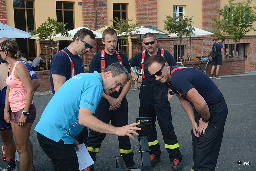 Hasiči všechny síly upřeli do štafety na 4×500 metrů, na závěr se ale nechali od kolegů zdravotníků vyhecovat do ještě delší štafety, každý ze čtyř soutěžících hasičů „vesloval“ celý kilometr, aby dohromady byly čtyři.