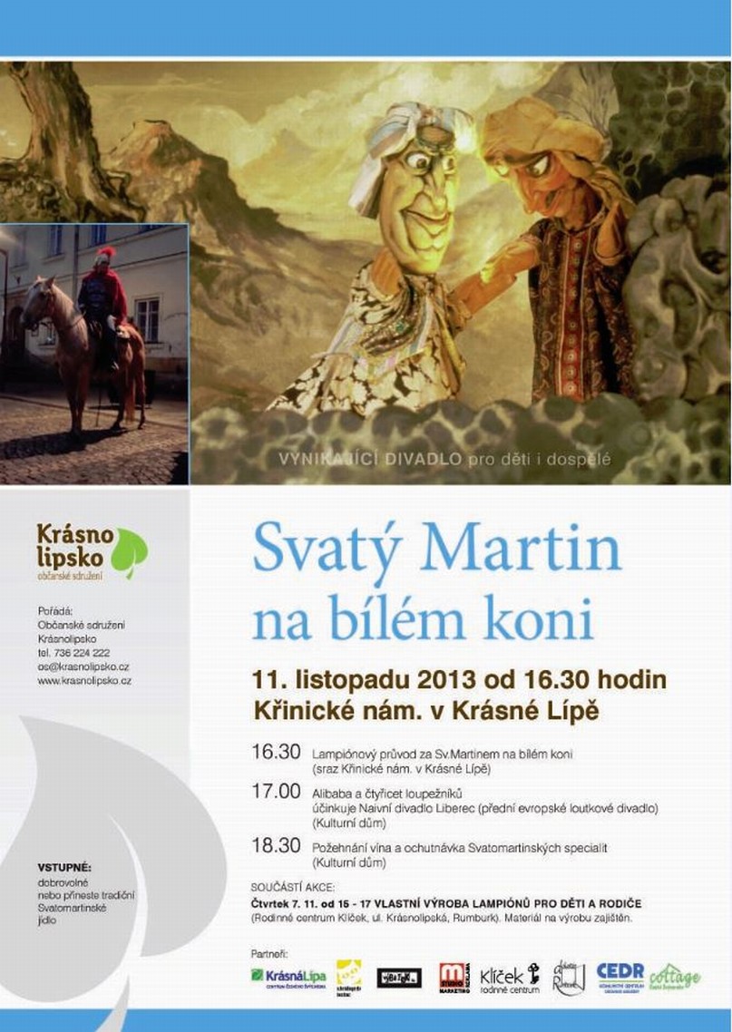 V pondělí 11. listopadu 2013 se mám stavit ve varnsdorfské vinotéce na ochutnávku Svatomartinských vín, ale to bude záležet na tom, jak dlouho bude trvat průvod od věžičky do starokatolického kostela. Určitě tím pádem nestihnu totéž v Krásné Lípě, a jestli letos něco pořádá i Rumburk, to opravdu nemám tušení (doplněno od KM – letos Svatomartinský lampionový průvod ŘKF Rumburk nepořádá).
