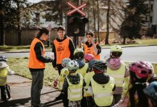 Pan strážník spustil světelnou signalizaci a vše se dalo do pohybu. Děti dostaly za úkol při projíždění dopravního hřiště na svých koloběžkách a odstrkovadlech, nejen dodržovat stanovená pravidla a řídit se dopravním značením, ale také vyhledat několik stanovišť se zábavnými úkoly, za které sbíraly barevná razítka. Během průjezdu dopravního hřiště se děti seznámily s funkcí semaforu, kruhového objezdu, přechodu pro chodce či reflexních prvků.