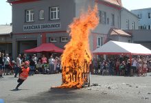Nejprve simulované zahoření věže děkanského kostela svatého Bartoloměje (zásah ze žebříku), dětská ukázka s hašením „domečku“, velmi propracovaná demonstrace nevhodnosti zalévání hořícího oleje v kuchyni vodou a nakonec historická stříkačka v rukou dobrovolníků. Po ukázkách dětský den.
