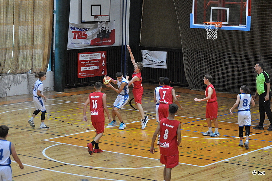 V zápase dosud neporažených týmů jsme přivítali celek Loun, se kterým jsme se dosud nestřetli. Od úvodního rozskoku bojovala obě družstva s maximálním úsilím. Po vyrovnaném úvodu se hosté dostali v 6. minutě do menšího náskoku (8:14). Ten se ale našim hráčům podařilo do konce první čtvrtiny srovnat. Průběh druhé čtvrtiny byl již vyrovnaný, žádný tým nezískal větší náskok. V poločase jsme tak vedli tím nejtěsnějším rozdílem. Také na začátku třetí čtvrtiny, i přes velkou snahu obou týmů, bylo skóre vyrovnané. Až v samotném závěru této čtvrtiny se našim hráčům podařilo několikrát soupeře ubránit a po úspěšných útocích jsme získali nadějný náskok (45:37). Ve zlepšeném výkonu v obraně pokračovali domácí hráči i v poslední části utkání a soupeře jsme již k ohrožení vlastního koše prakticky nepustili. Cenné vítězství po kvalitním výkonu.