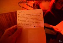 Celek trval bezmála hodinu a půl a po celou dobu nikdo z účinkujících „z role nevypadl“, reagovali neustále a nejen na to připravené, ale zejména na to od nás, od sledujících a zúčastněných. A zároveň se dalo kdykoliv zastavit a jen tak si číst dopisy v Podatelně milostných psaníček nebo rozjímat v Květinové Lóži (Květinovém loži), ale taky naslouchat „odposlechům“ z jeviště či sledovat video-dokument o jednotlivých postavách a jejich motivacích přijít zrovna sem. A to byly chvíle, kdy bylo fajn prostě jen být a nechat ten „šrumec“ letět okolo a nabrat síly do dalších dialogů a nápaditých akcí.