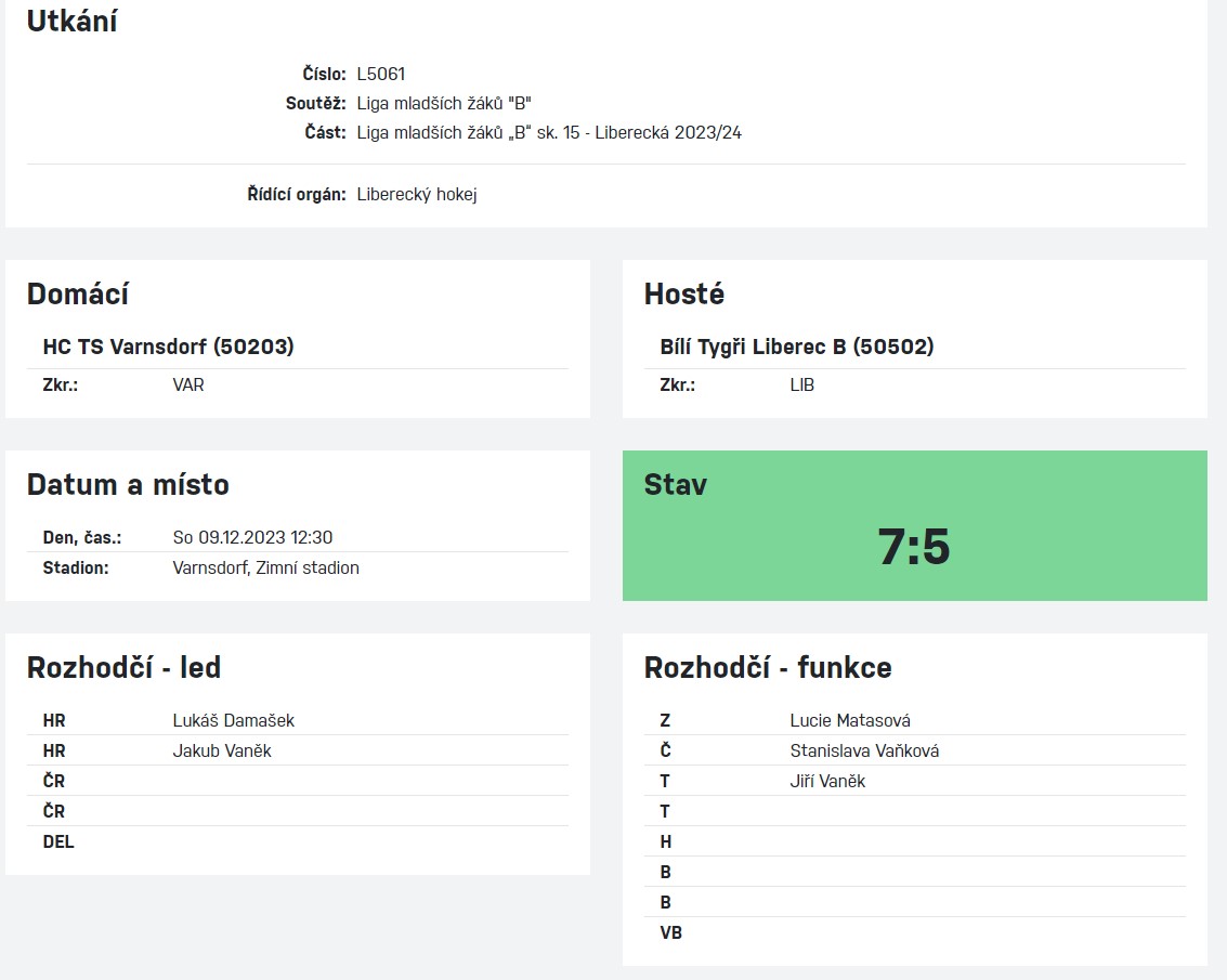 V sobotu 9. prosince 2023 na varnsdorfském zimním stadionu proběhlo 13. kolo Ligy mladších žáků, proti sobě nastoupili na led celky HC TS Varnsdorf a Bílí Tygři Liberec B.