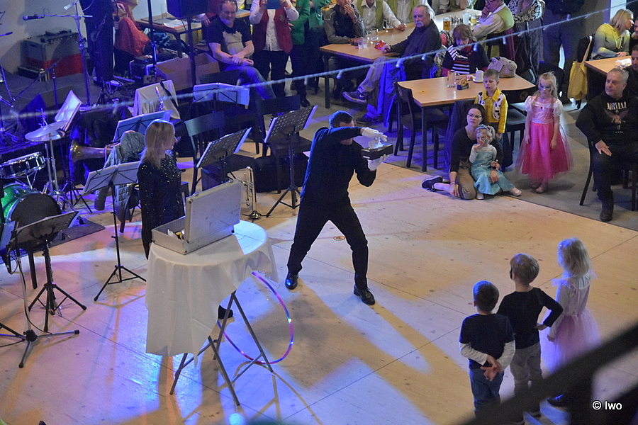 Sic až po Popeleční středě, ale na akci to vliv nemělo. Krátce po oficiálním zahájení nebylo před areálem už kde zaparkovat a v hale hlava na hlavě. Lužanka zvesela vyhrávala a střídala se s vystoupeními letošní oslavenkyně – ZŠ a MŠ Bratislavská (chystá se zahradní slavnost ke 185. letům založení školy). Vystoupení ZUŠky jsem neviděl, což ovšem nic neznamená. Místo toho zpestřila odpoledne přítomnost „sousedů“ z Großschönau s ukázkami jejich oslav fašanku. Trochu jiné pojetí, než jak jsme zvyklí u nás. Bouřlivý aplaus sklidilo vystoupení recesistického „kouzelníka“. Roura avizoval střídání dechovky za country (Malvas) a brzké vyhlašování masek, místa k sezení obsazena, u stánků plno, fronta u malování na obličej, venku před halou elektrický býk a několik dalších stánků.