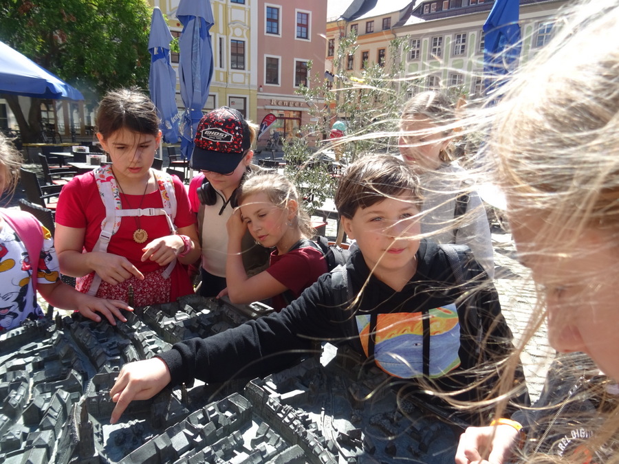 Navštívili jsme například simultánní chrám sv. Petra (Dom St. Petri). Chvíli jsme se dohadovali, která část patří evangelíkům, a která katolíkům, ale nakonec děti vše správně rozklíčovaly. Dozvěděli jsme se, že kazatel, nechodí kázat do klece, ale na kazatelnu – lužickosrbsky „klětka“ a objevili i erb s českým lvem z období, kdy Lužice patřila k zemím Koruny České.