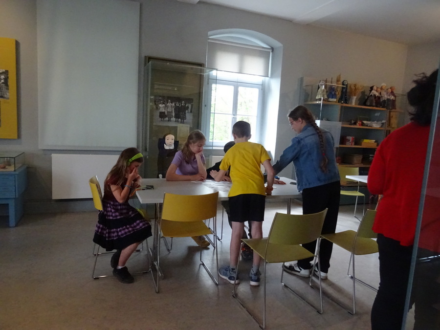 V Kornmarktu jsme si koupili zmrzlinu a drobné suvenýry a pak už naše kroky zamířily do lužickosrbského muzea (Serbski muzej). Tady byly děti vybaveny audioprůvodci a vydaly se spolu s obrem a vodníkem na průzkum historie a kultury Lužických Srbů. Starší žáci obdivovali především galerii obrazů, kterým vévodila díla např. Jana Buka. „To světlo na tom obrazu je prostě úžasné!“ Menším dětem se líbily především kroje. „Ty jo, ta šňůra s penízkama!“ „A proč není nevěsta v bílém?“ Zaujala je i expozice o škole.