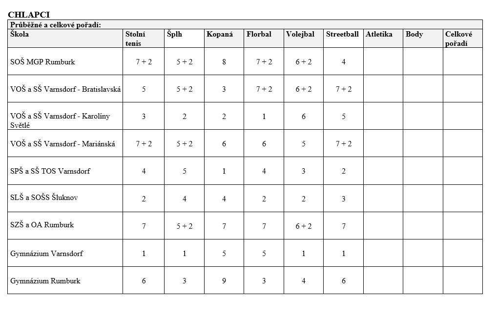 Dne 29.5. se žáci naší školy zúčastnili streetballového turnaje středních škol, kde bylo 9 týmů ze sedmi škol. Přihlásili se Josef Zdražil, Ondřej Luh, Patrik Ptáček a Danny Charvát. První zápas byl nejtěžší ve skupině a soupeř byl nad naše síly, prohra nás mrzet nemusela, byli to pozdější vítězové celého turnaje. Ve skupině jsme se umístili na krásném třetím místě a v následném vyřazovacím zápase jsme těsně prohráli a zahráli si skupinu „B“ o umístění, kde jsme všechny zápasy vyhráli a celkově skončili na pátém místě. Škoda jednoho zápasu, který nevyšel podle představ, mohla z toho být „bedna“.