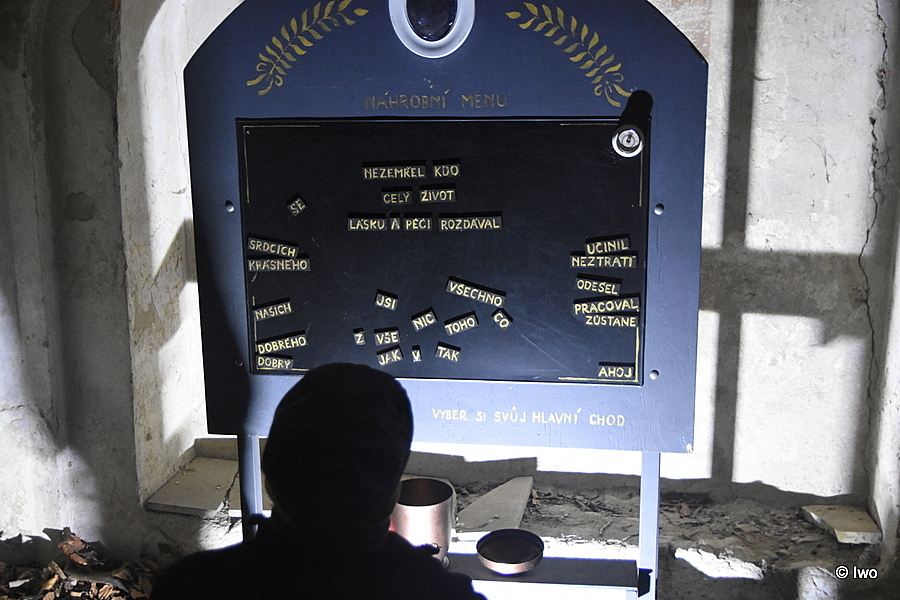 Co se týče programu, bylo to celkově plné ďábelských nástrah. Například nás u těch náhrobních kamenů nabádali, abysme otáčeli obrázky zesnulých a četli si tajné vzkazy. Pak jsme měli zapalit svíčku na kameni s nápisem Poslední přání. Asi 5 lidí ji skutečně zapalilo a něco si tajně přáli. A v neposlední nás postavili před asi 6 uren, (to jsem zrovna nevyfotila, páč mi to už přišlo blbý). Tyhle Hochcomedianten to uvedli tak, že si máme do uren sáhnout. Že si tak sáhneme do svědomí.