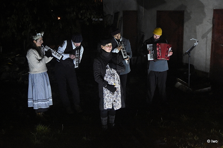 Soubor, který už jsme zažili. V nezvyklém (a běžně zela nepřístupném) prostoru. Zpočátku obavy, zda vůbec bude pro koho hrát, nakonec příchozí rozděleni do dvou skupin. Slavnostní přivítání fernetovým „lakem na rakve“ a pak putování danse macabre. Přání (kupodivu poslední), sahání si do svědomí, pomíjivost, klepání bačkorama a spousta dalšího. K tomu veselé lidové popěvky na téma smrti. Umře i sama Smrt? Zážitek vpravdě nevšední.