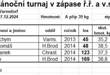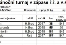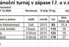 V sobotu 7.12.2024 jsme vyrazili na turnaj do Varnsdorfu, kde se sjelo celkem 12 týmů a 89 zápasníků.