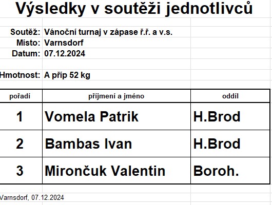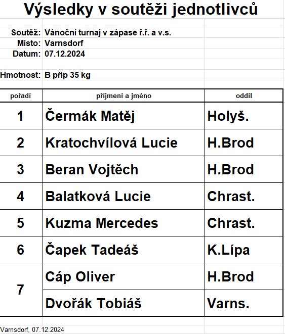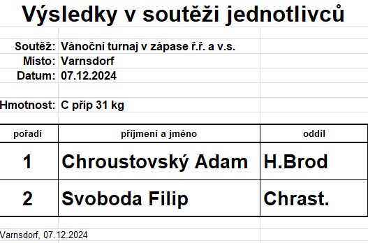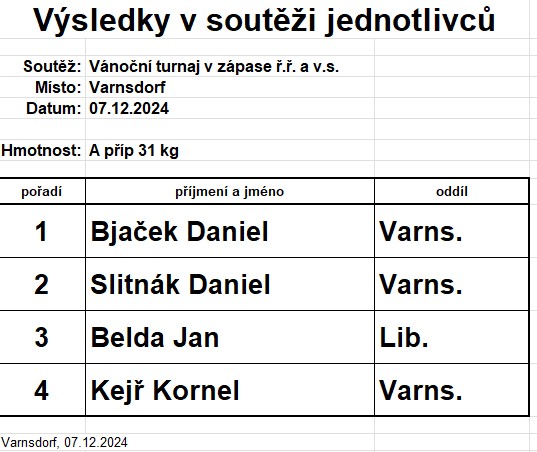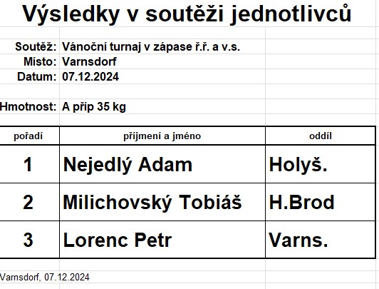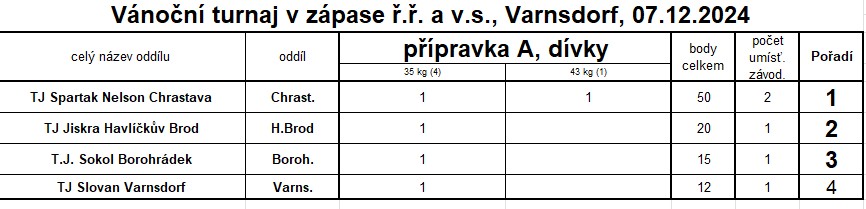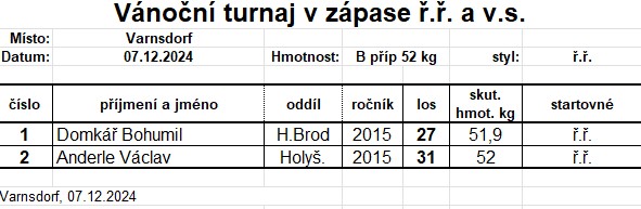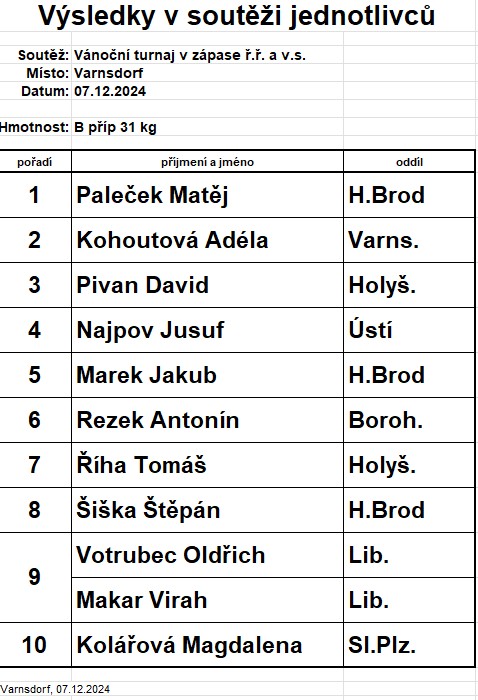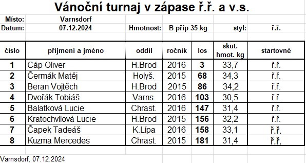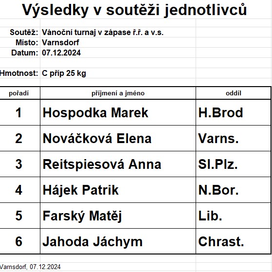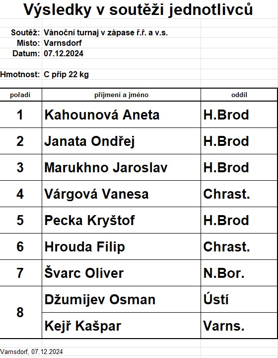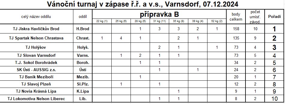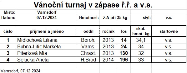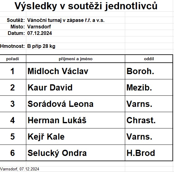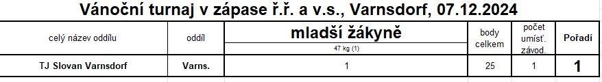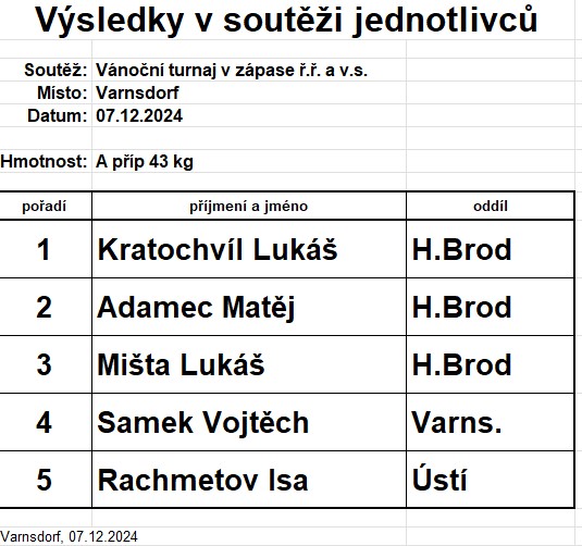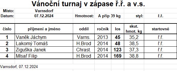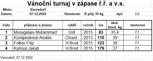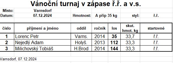 V sobotu 7.12.2024 jsme vyrazili na turnaj do Varnsdorfu, kde se sjelo celkem 12 týmů a 89 zápasníků.