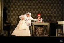 Navíc se mi dostalo příjemného bonusu smět si prohlédnout zblízka scénu – včetně komentáře, že od minule se změnili všichni herci, protože kdo ztloustne, v tomhle představení hrát prostě nemůže (kdo viděl, snad pochopí).