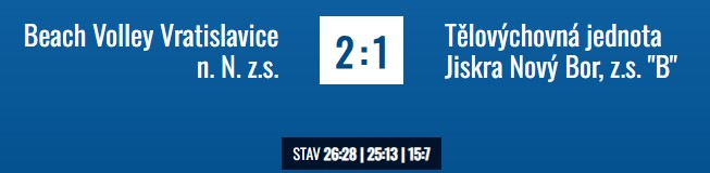 11:00 Beach Volley Vratislavice n. N. z.s. – Tělovýchovná jednota Jiskra Nový Bor, z.s. „B“