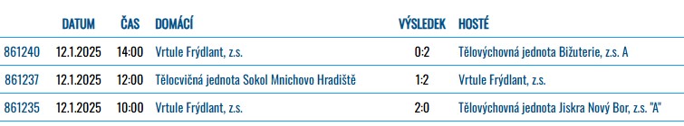 10:00 Vrtule Frýdlant, z.s. – Tělovýchovná jednota Jiskra Nový Bor, z.s. „A“