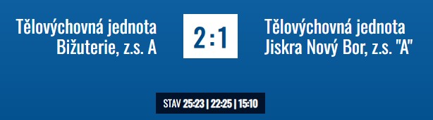 12:00 Tělovýchovná jednota Bižuterie, z.s. A – Tělovýchovná jednota Jiskra Nový Bor, z.s. „A“