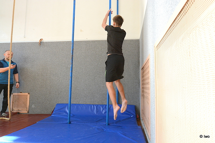 Po stolním tenise podruhé v historii šplh, byť „měkčí“ než mají střední školy. Proti nim podstatně větší účast – poslední kolo pokusů přes mnohé odpadlíky nikoli sólově s dublovanou časomírou, nýbrž po trojicích.