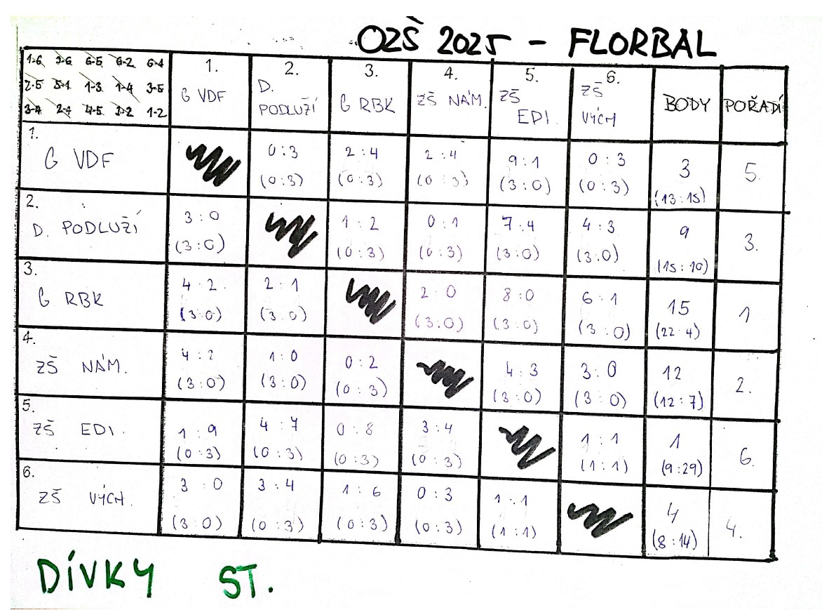Skvěle se zadařilo týmům děvčat, která v obou kategoriích zvítězila. Zápasy byly hodně vyrovnané, především v utkáních s týmy Gymnázia Varnsdorf a ZŠ náměstí E. Beneše visela výhra na vlásku. Přesto ale nakonec zvládla každý zápas vyhrát a ukázat, že děvčata z rumburského gymnázia florbal hrají velmi dobře.