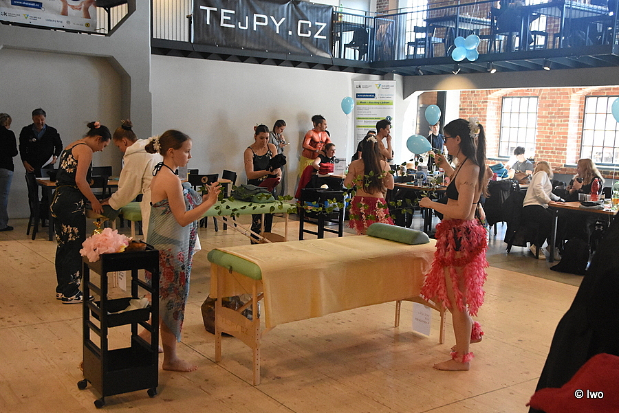 V těsném závěsu po soutěži výčepních a barmanů. Letos 8 škol (krom domácích Litoměřice, Ústí nad Labem, Plzeň, Brno, Most, Dvůr Králové nad Labem a Turnov). V první části sportovní masáž s losovanou částí těla. Po obědové pauze a několika ukázkách-přednáškách alternativní masáž.