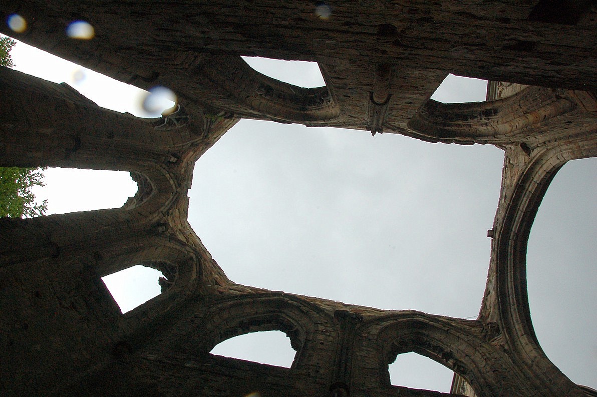 Pokud jste tu ještě nebyli a budete plánovat cestu, varuji vás – nechte si dost času. Zpočátku se to nezdá, ale to je tam odbočka, tu cestička, támhle schody, okružní vyhlídková trasa kolem celé skály a nakonec jsem nestihl všechno. V části hned za vstupem se „pilně“ pracuje, postávaly tu stavební stroje, některá místa byla ohrazena a nepřístupná – a patřila k nim zřejmě i část expozic, kterých tu zrovna moc není. To ovšem vůbec nevadí, protože jak se člověk přesouvá dovnitř do areálu, ruiny jsou stále zajímavější. To nej je impozantní zbytek klášterního kostela a k němu přiléhající věžová rozhledna, které ze svých 33 metrů po překonání 123 schodů nabízí parádní výhledy. A to i když zrovna začne pršet…