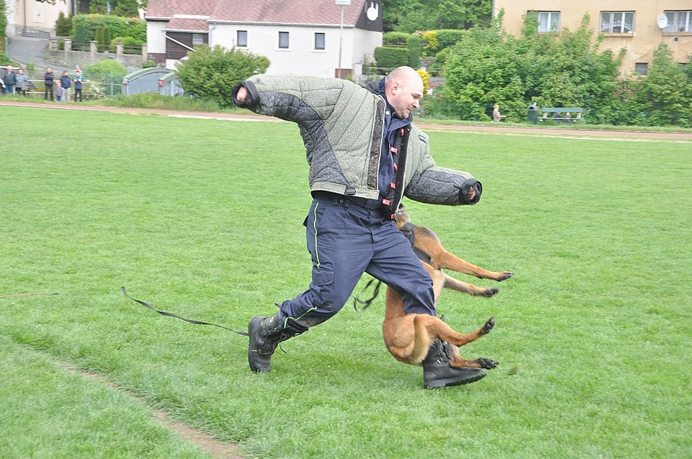 U vystavených zbraní (lehký kulomet, samopal, brokovnice, několik pistolí, automatická puška) zaujala zklamaná hláška z davu „v tom nejsou náboje“. A když pak psovodi s pomocí dobrovolníka z řad hasičů názorně předvedli, že roztomilý hafan nemá problém srazit k zemi stokilového chlapa, upozorňovala paní učitelka svou třídu „Tak děti, když si zase něco vezmete v Albertu bez placení, přiběhne takovýto pes a kousne vás do zadku“. Na hasičské ukázky v 11:00 už jsem čekat nevydržel a vyrazil za teplem.
