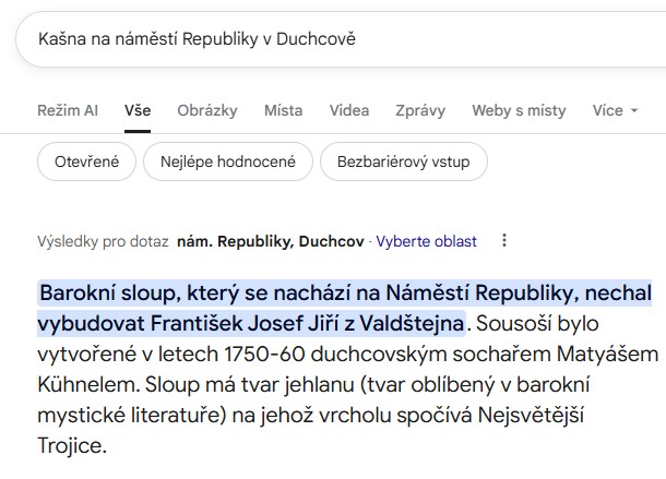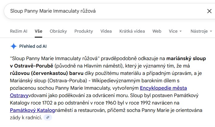 Protože začátek vypadá solidně a odpovídá, o to horší je zbytek. Ten se totiž, aniž je to na první pohled poznat, týká zcela jiných pomníků, z jiných měst… Fakt se na AI někdo spoléhá a věří jí?