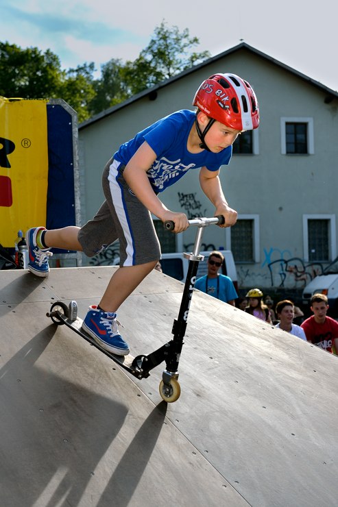 I když podvečerní program končil klasicky vyhlášením vítězů v jednotlivých kategoriích – koloběžky, bike i skoku do výšky – měl jsem pocit, že o to ani moc nejde. Asi 150 fandíků, faninek, tatínků a maminek vidělo freestylové jízdy svých favoritů. Někteří jeli svůj první „závod“. Vítězstvím již bylo vyjet a překonat trému z prvního závodního vystoupení. To ostřílení borci udivovali svými perfektně zvládnutými triky. Bylo jedno, zda to bylo v kategorii koloběžek nebo biků. Dobrou atmosféru v parku doplňoval svým komentářem spíkr DJ Kajak a vybranou muzikou umocňoval DJ Roura. A tak se nelze divit, že někteří aktéři podlehli navozené atmostéře a ve snaze oprostit se od všedních starostí dostali chuť, proletět se ke hvězdám. Pokusy to byly nadějné, doplněné různými triky. Jenže gravitace byla proti. Snad příští rok se to těm nejlepším konečně podaří. Že s gravitací je nutné vždy počítat, se přesvědčili bikeři v poslední disciplině – „skoku do výšky“. Ale to již byl skoro závěr akce. Organizátoři rozdali dárky od sponzorů nejlepším, takže skoro všem. A po nezbytném společném fotografování všech aktérů s fandy, faninkami, sponzory,…. se šlo domů. Nezbývá než dodat klasický závěr : “ … kdo nepřišel, může jen litovat.“ Ale příští rok to může napravit.