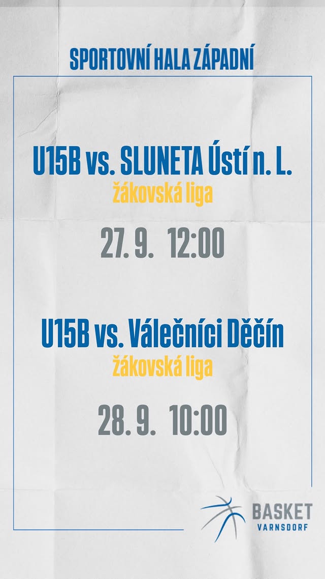 V neděli 28. září 2025 ve sportovní hale ve Varnsdorfu nastoupili ke svému druhému víkendovému utkání ve 3. kole žákovské ligy žáků U15M, skupina B, kluci TJ Slovan Varnsdorf B proti celku Válečníci Děčín.
