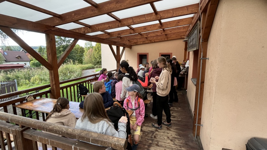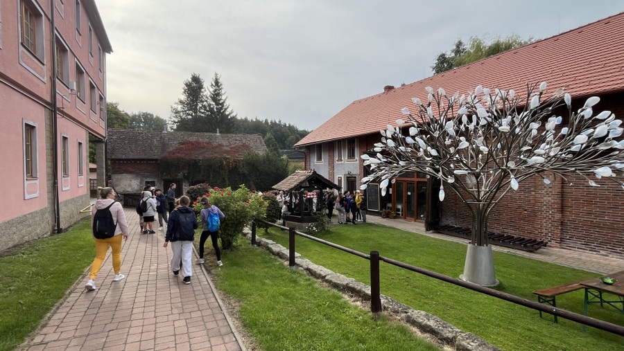 Velkým zážitkem byla také návštěva sklárny Ajeto a sklářské krčmy v Lindavě, kde si žáci mohli prohlédnout práci sklářů přímo u pece. Dozvěděli se, jak se sklo vyrábí. Cestou zpět všichni prošli stezkou odvahy v bývalém náhonu pro brusírnu zrcadel.