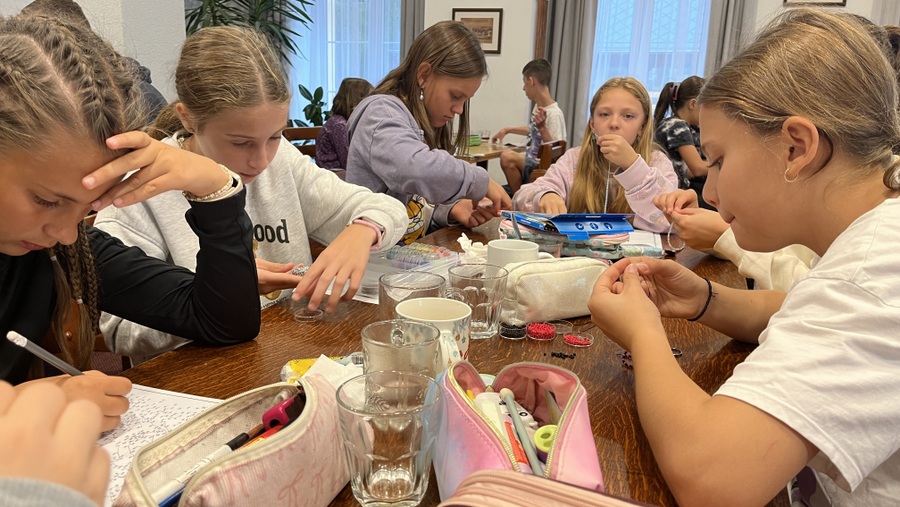 Program byl pestrý – hned první den si děti vyzkoušely různé seznamovací hry a soutěže, při kterých se dozvěděly něco nového o spolužácích i o učitelích. Nechyběly ani týmové aktivity, které vyžadovaly spolupráci a domluvu – výroba šperků z přírodních materiálů nebo netradiční kvízy.