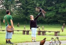 V areálu správy Národního parku České Švýcarsko na příchozí čekaly jednak soutěže pro děti, jednak sokolnické vystoupení skupiny Zayferus. I když jsem sokolníky viděl před chvílí, tohle byla zcela jiná váhová kategorie. Už jen počtem a výběrem přítomných dravců, natož choreografií ukázek. Od ptáků, které by člověk očekával (puštík, poštolka, sokol) přes ta známá spíše ze ZOO (káně Harrisovo, čimango, orel bělohlavý) až po kusy, které by člověk na rukavici fakt nečekal (kondor, sup). Naštěstí jsem dorazil právě včas na ukázku a mohl litovat, že jsem si vzal starý (= pomalý) foťák a nedostatečně dlouhé sklo…