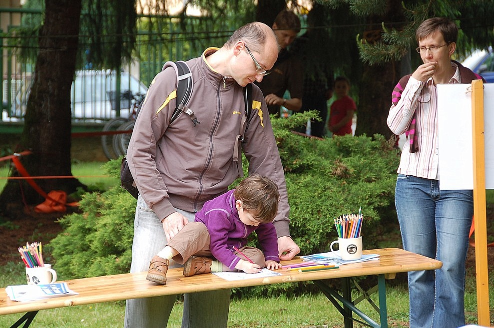 Po ukázce se děcka s rodiči rozprchla k soutěžním stanovištím, která byla zaměřena taktéž na ptáky (10 let ptačí oblasti je jen jednou za kariéru, že). Málokdo asi tušil, že za úspěšné splnění úkolů čeká v krabicích speciální odměna – čokoládové plakety s ptačími motivy z krásnolipské čokoládovny Mana. Doufám, že se dostalo na všechny, já do konce nečekal.