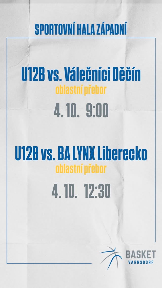 V sobotu 4. října 2025 ve sportovní hale ve Varnsdorfu ráno nastoupili ke svému prvnímu dnešnímu utkání domácí TJ Slovan Varnsdorf proti celku Válečníci Děčín v oblastním přeboru mladších minižáků U12.